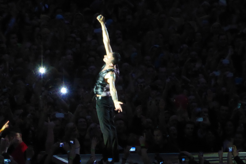 Was gibt es da Passenderes, als „But not tonight“ anzustimmen, das mit „Oh God, it’s raining / But I’m not complaining / It’s filling me up / With new life“ beginnt. Und so war es auch: Niemand im Stadion ließ sich durch den Regen die Laune vermiesen, schon gar nicht Depeche Mode.