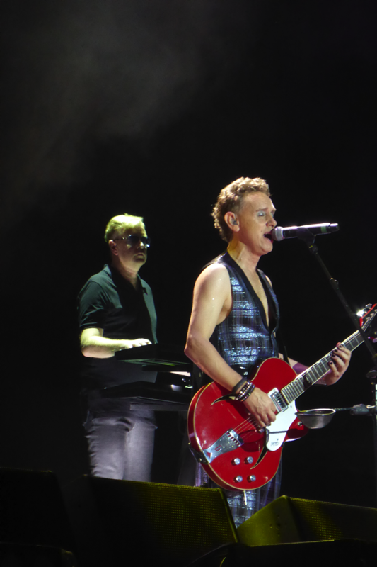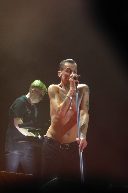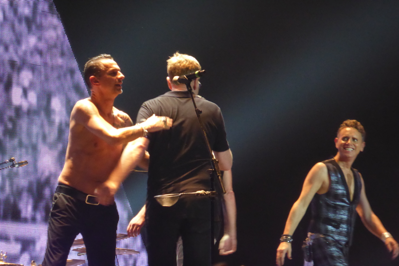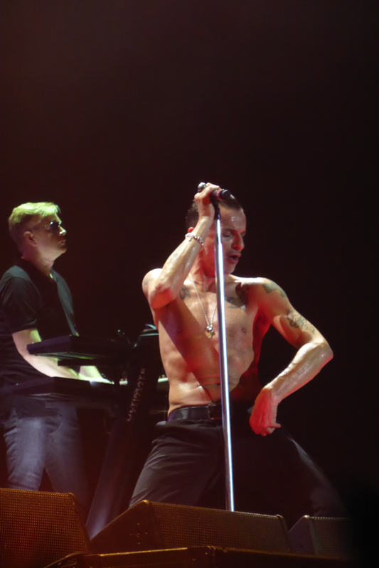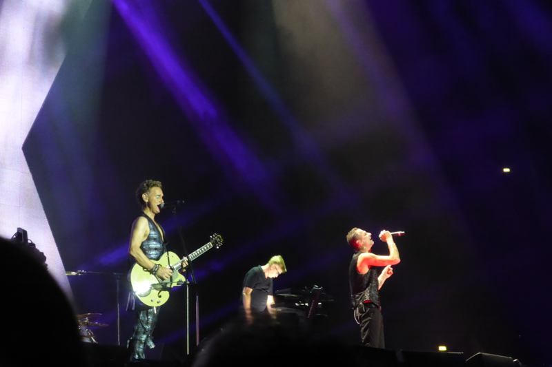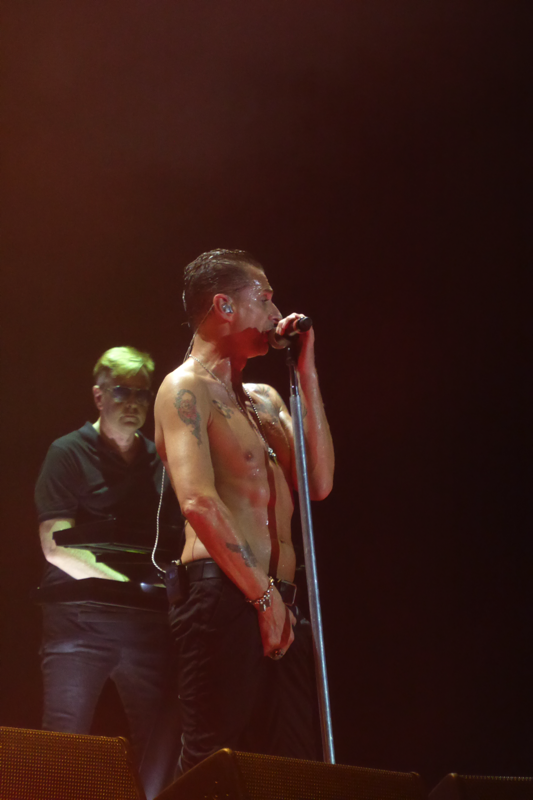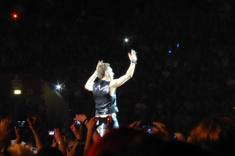 Wenn ich gefragt werde, warum ich mir so viele Konzerte der gleichen Tour angucke, begründe ich dieses meistens mit der immer wieder veränderten Setlist und der unterschiedlichen Locations und damit verbundenen Stimmungen in den Stadien. Wer bei beiden Konzerten in Düsseldorf dabei war, bestätigt sicherlich meine Meinung, dass das auch gut war so… Die Atmosphäre bei diesen Konzerten hätte unterschiedlicher nicht sein können. Zwar war die Stimmung am Mittwoch durchaus vergleichbar mit manch anderen Abenden der Tour, aber Freitag war aus meiner Sicht das beste Deuschlandkonzert von denen, die wir erlebt haben (zu Hamburg kann ich nichts sagen, da waren wir nicht). Man merkte dieses nicht nur im Innenraum und auf den Rängen, sondern auch an Depeche Mode selbst. Die Band hatte so viel Spaß, wie ich es noch bei keinem anderen Konzert erlebt habe. Sie haben sehr viel gelacht, Dave schon fast außergewöhnlich viel mit den Fans gesprochen und die Teile, in denen das Publikum mitsingen sollte, waren besser und länger.