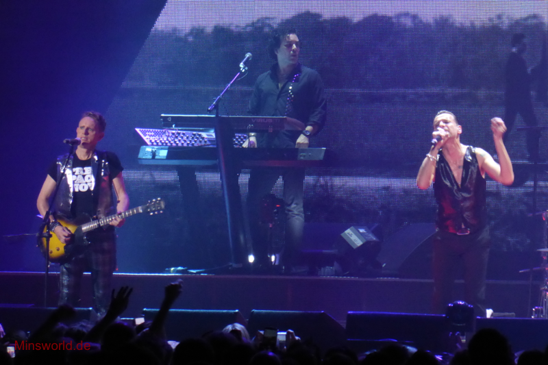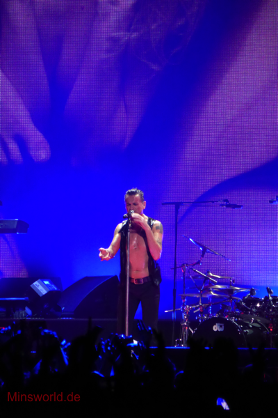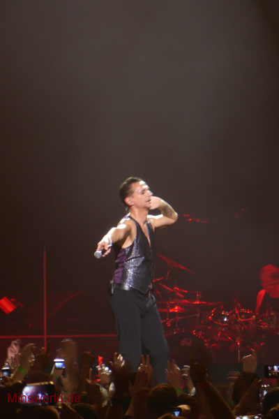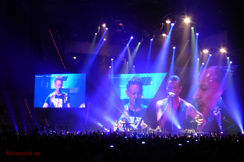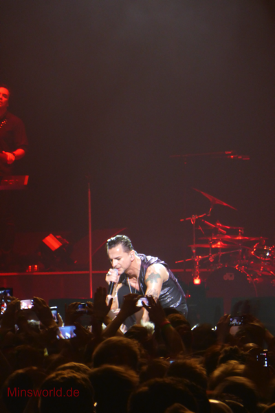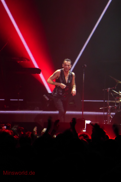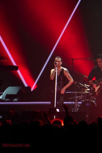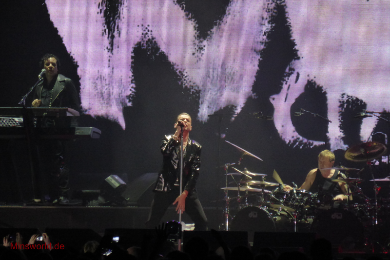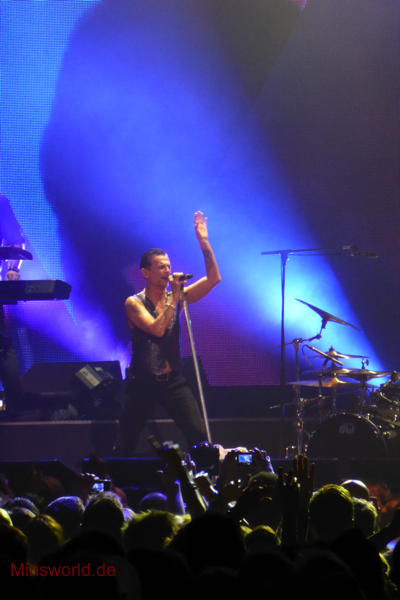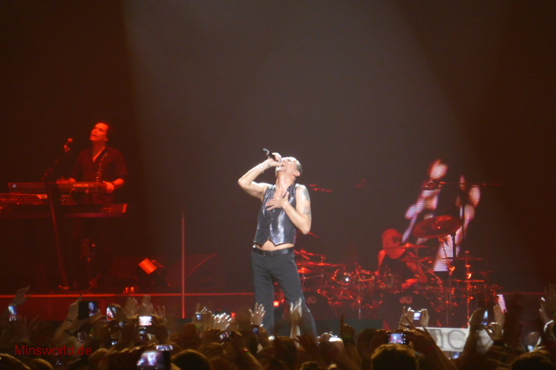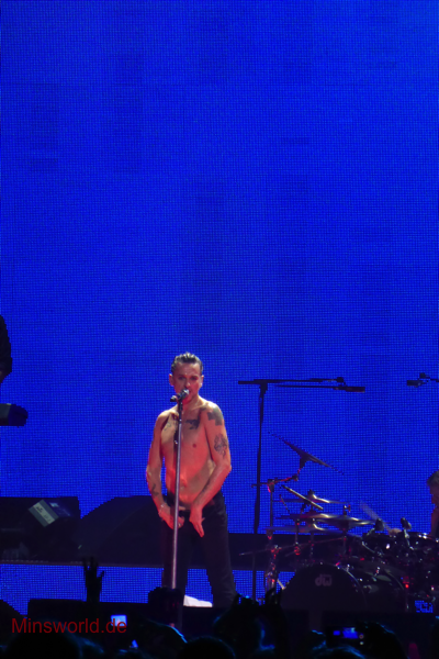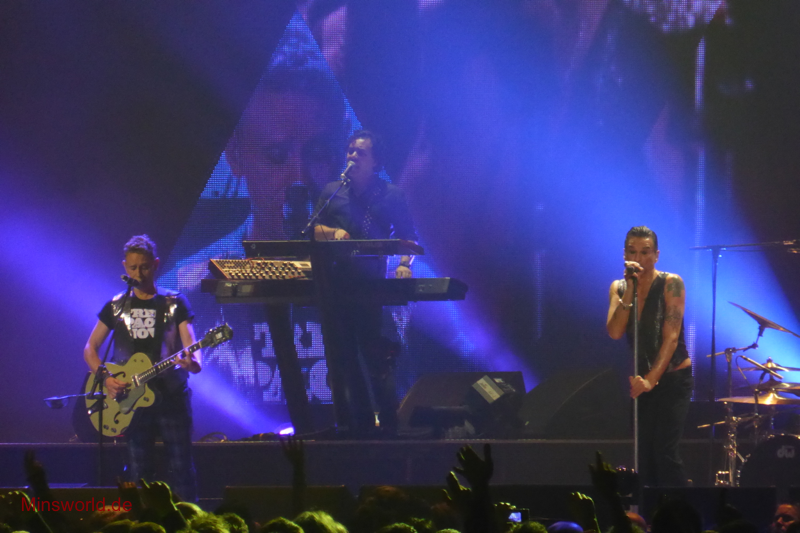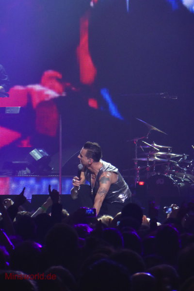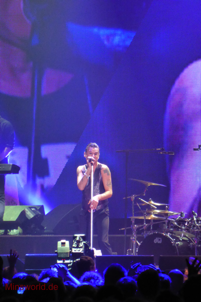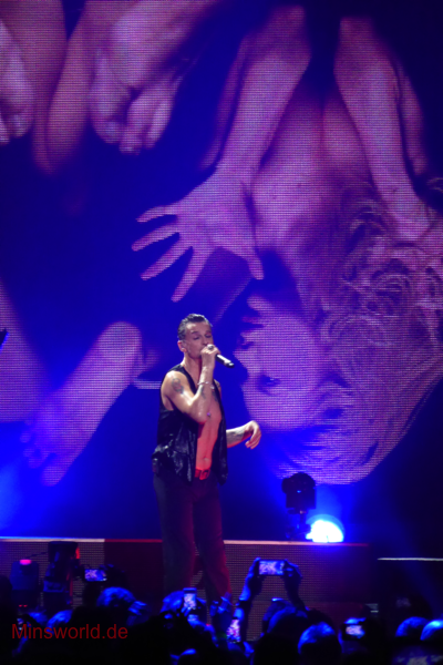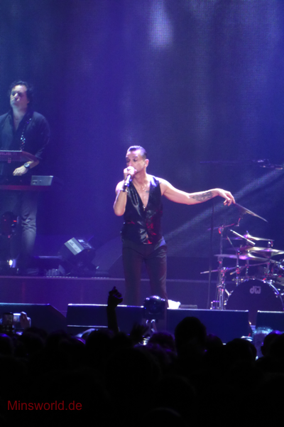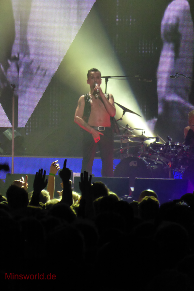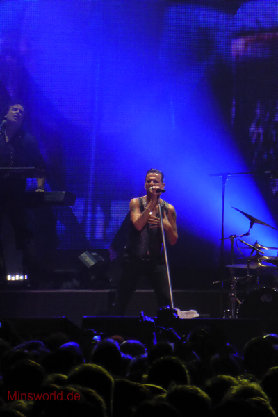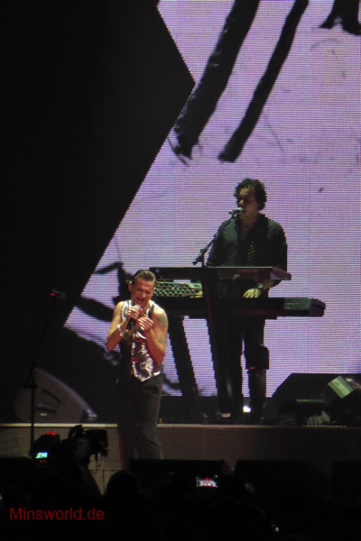 Mit etwas Verspätung betraten Depeche Mode die Bühne. Sie spielten (nahezu) ihre Hallentour Standard-Setlist, nur Blue Dress kam für uns als Neuerung hinzu. Martin sang diesen Song nach Paris nun zum zweiten Mal.