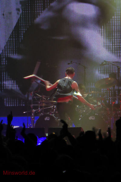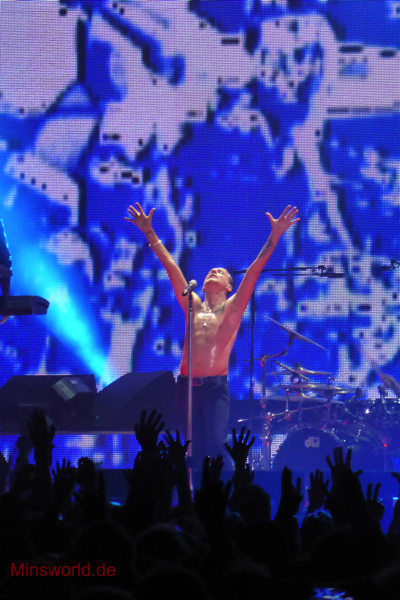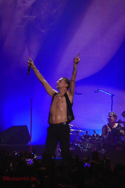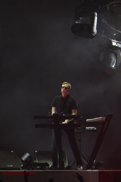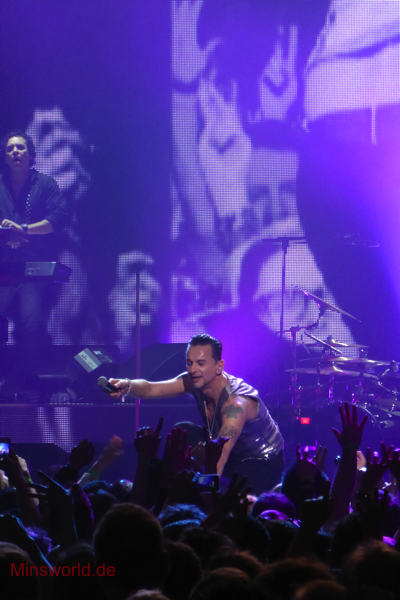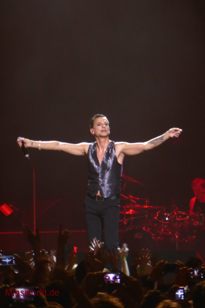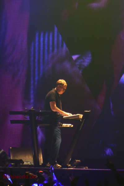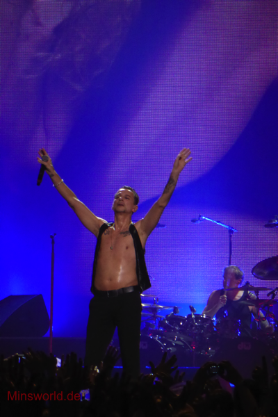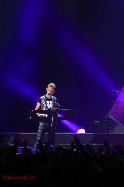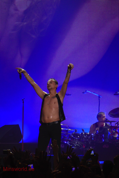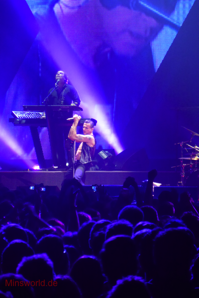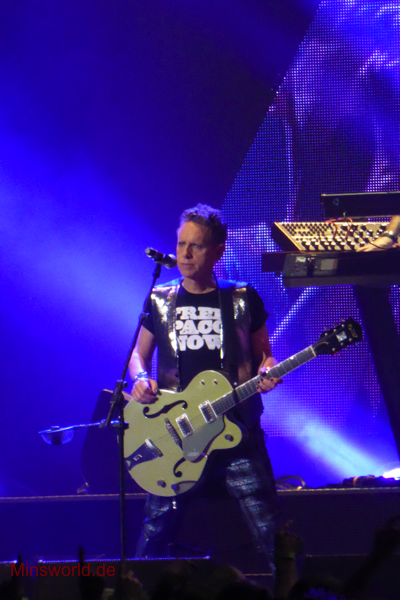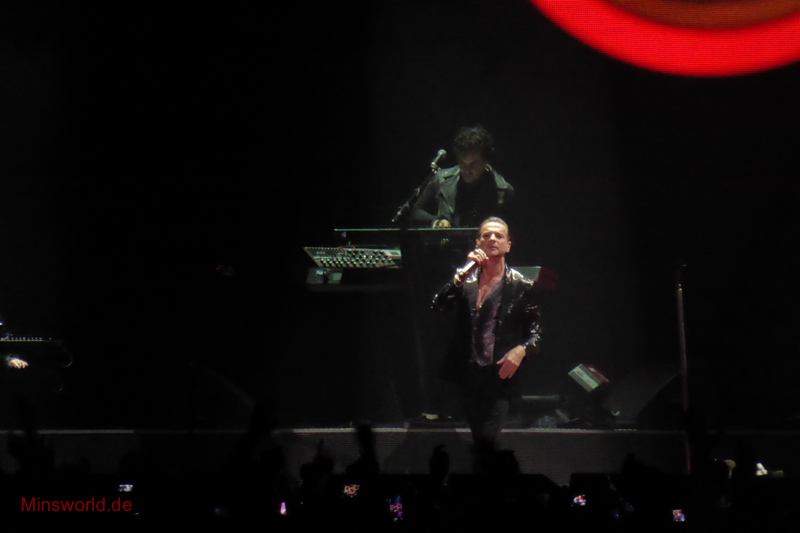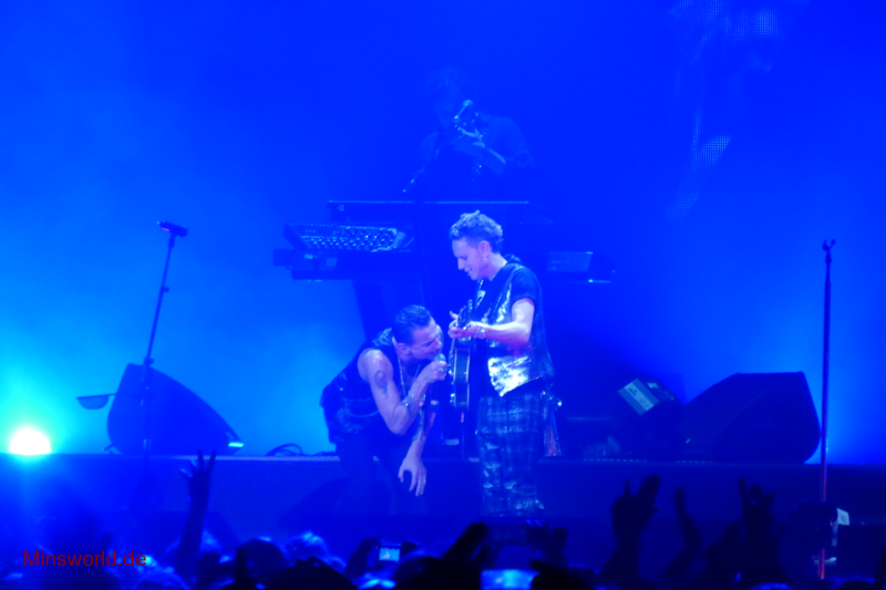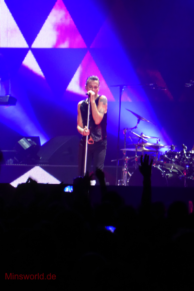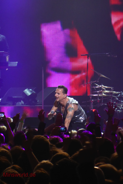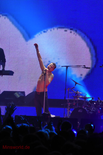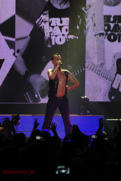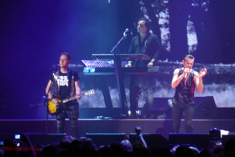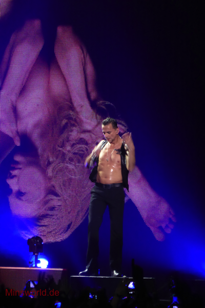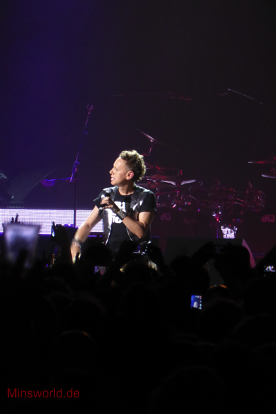 Mit etwas Verspätung betraten Depeche Mode die Bühne. Sie spielten (nahezu) ihre Hallentour Standard-Setlist, nur Blue Dress kam für uns als Neuerung hinzu. Martin sang diesen Song nach Paris nun zum zweiten Mal.