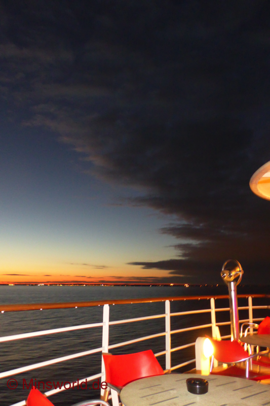Unterbrochen wurden unsere Würfe auf die Scheibe eigentlich nur durch ein paar Delfine, die neben der AIDAbella herschwammen (nicht sehr scharf, aber versucht mal von einem bewegten Schiff schwimmende Delfine innerhalb von wenigen Sekunden zu fotografieren…):