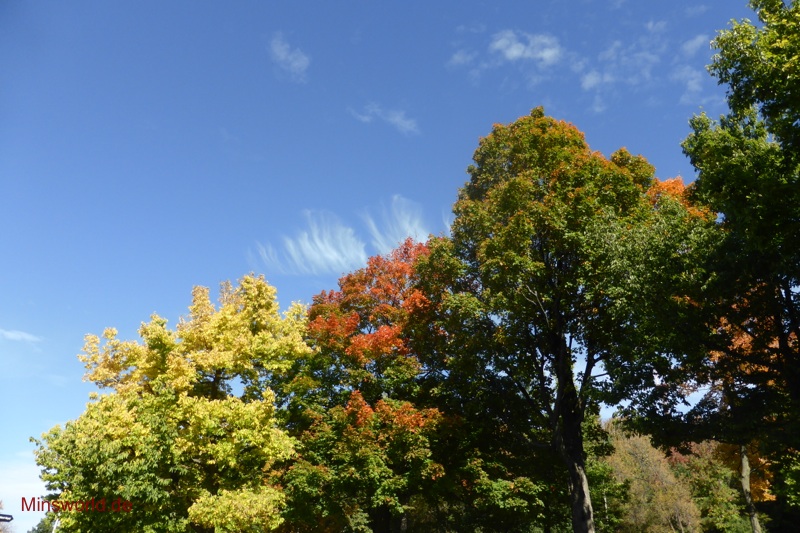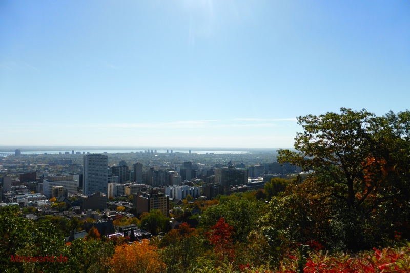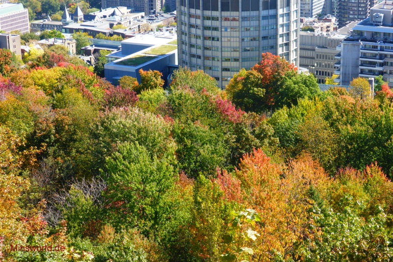 Wir hatten auf dieser Bustour noch einen Fotostopp, von dieser Position aus war die Sicht auf die Stadt nicht ganz so toll, aber durch die Bäume im Indian Summer-Look dann dennoch beeindruckend.