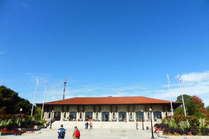 Unser kurzer Fußweg führte uns zum Chalet du Mont-Royal, ein Gebäude im Beaux-Arts-Stil, das auf einer von zwei Terrassen im Parc du Mont-Royal steht. Von dieser Terrasse aus hat man einen traumhaften Blick auf Montréal.