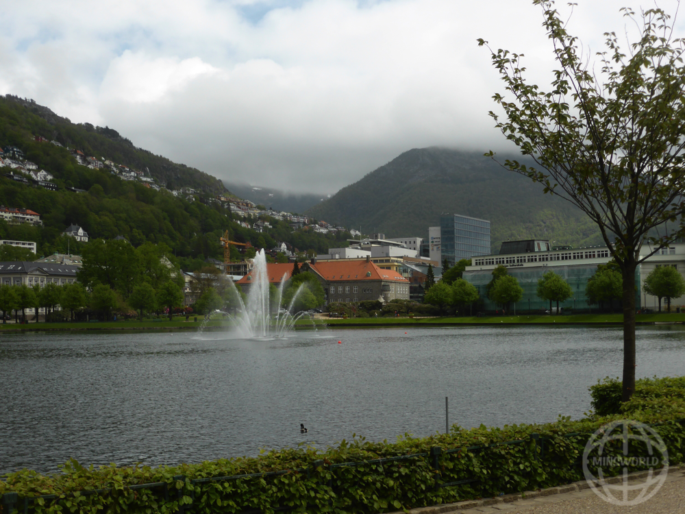 Bergen, die zweitgrößte Stadt Norwegens, ist eine alte Hansestadt, die am Byfjord liegt. Die Stadt wird von sieben Bergen umgeben, der bekannteste ist der Fløyen. Die Stadt gilt als „Tor zu den Fjorden“. Bergen ist insbesondere durch die am Naturhafen verlaufende Bryggen (alte Handelseinrichtungen der Hanse) gekennzeichnet. Nach verheerenden Bränden wurde in Bergen ein Verbot erlassen, Holzhäuser in der Stadt zu bauen. Die Häuser von Bryggen wurden nach jedem Brand wieder aufgebaut, sodass ihr Profil immer noch das des 12. Jahrhunderts ist. Dies war ausschlaggebend zur Ernennung zum Weltkulturerbe als Beispiel hanseatischer Baukunst in Norwegen durch die UNESCO. Die Stadt ist mit ca. 250 Regentagen die regenreichste Großstadt Europas.