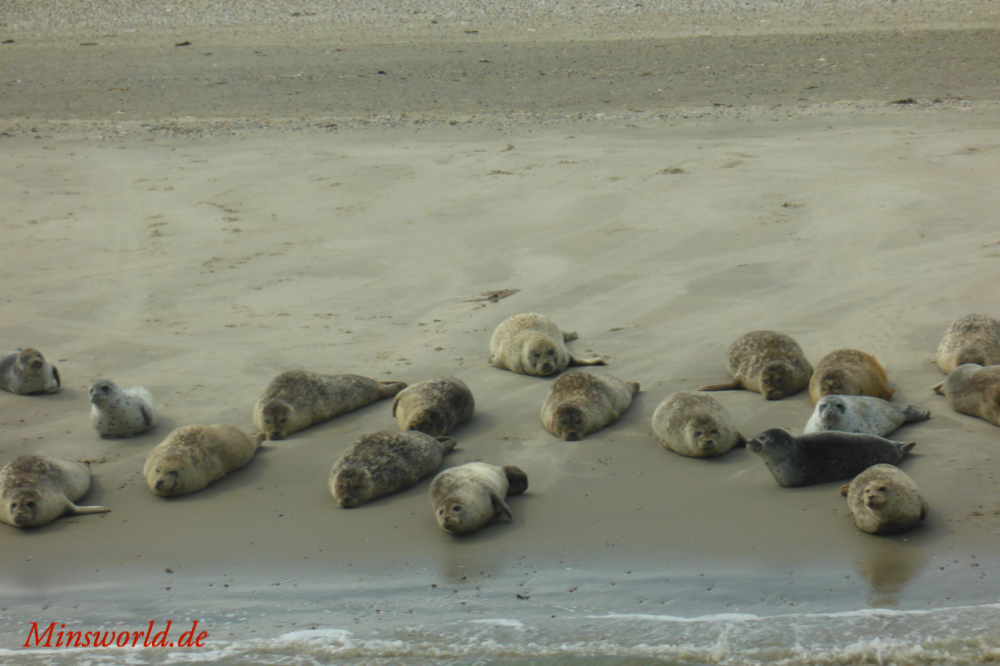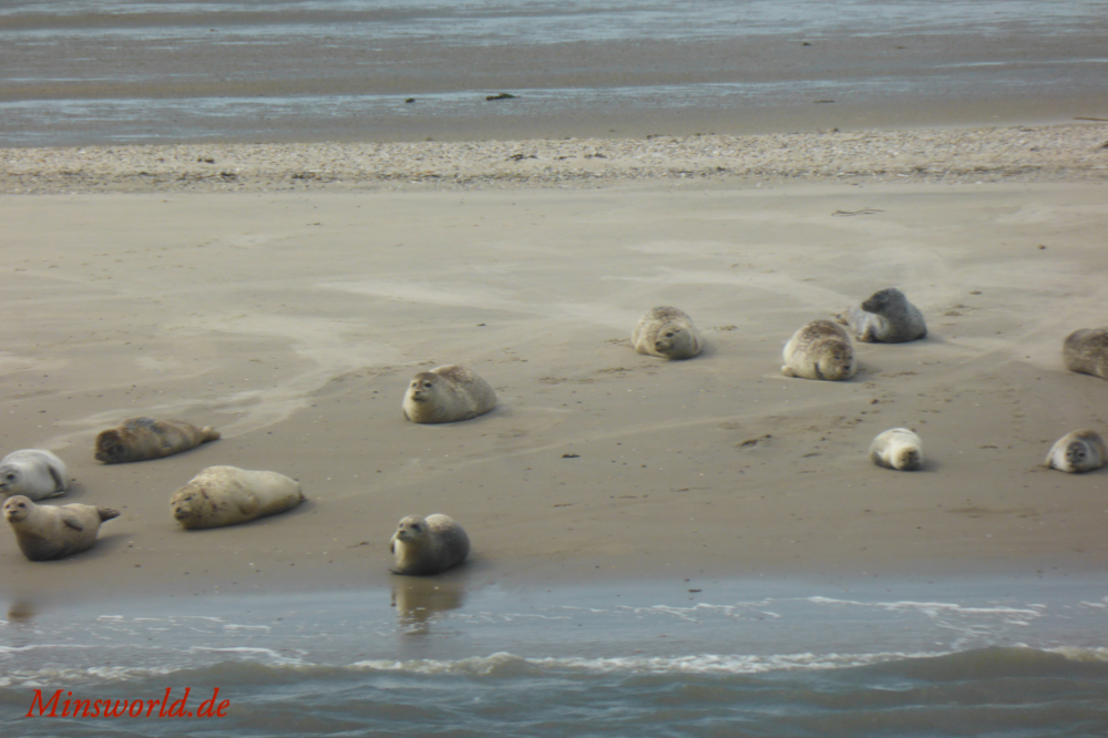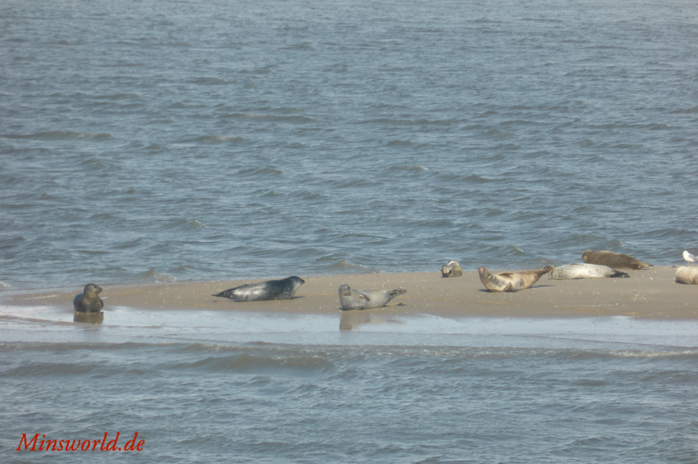 Durch das Essen waren wir dann jedoch so spät auf der Fähre, dass wir leider nur drinnen einen Platz bekamen, jedoch auf der richtigen Seite, sodass ich die Seehunde und Kegelrobben auf der Sandbank von Norderney fotografieren konnte. Hier ein kleiner Rat an alle, die das erste Mal nach Baltrum fahren: Unbedingt auf der Hinfahrt Backbord (also links) einen Platz suchen (auf der Rückfahrt entsprechend Steuerbord), damit ihr die Seehunde und Kegelrobben beobachten könnt! Die Fähre fährt übrigens gezeitenabhängig, also vorher dringend informieren, wann sie übersetzt.
